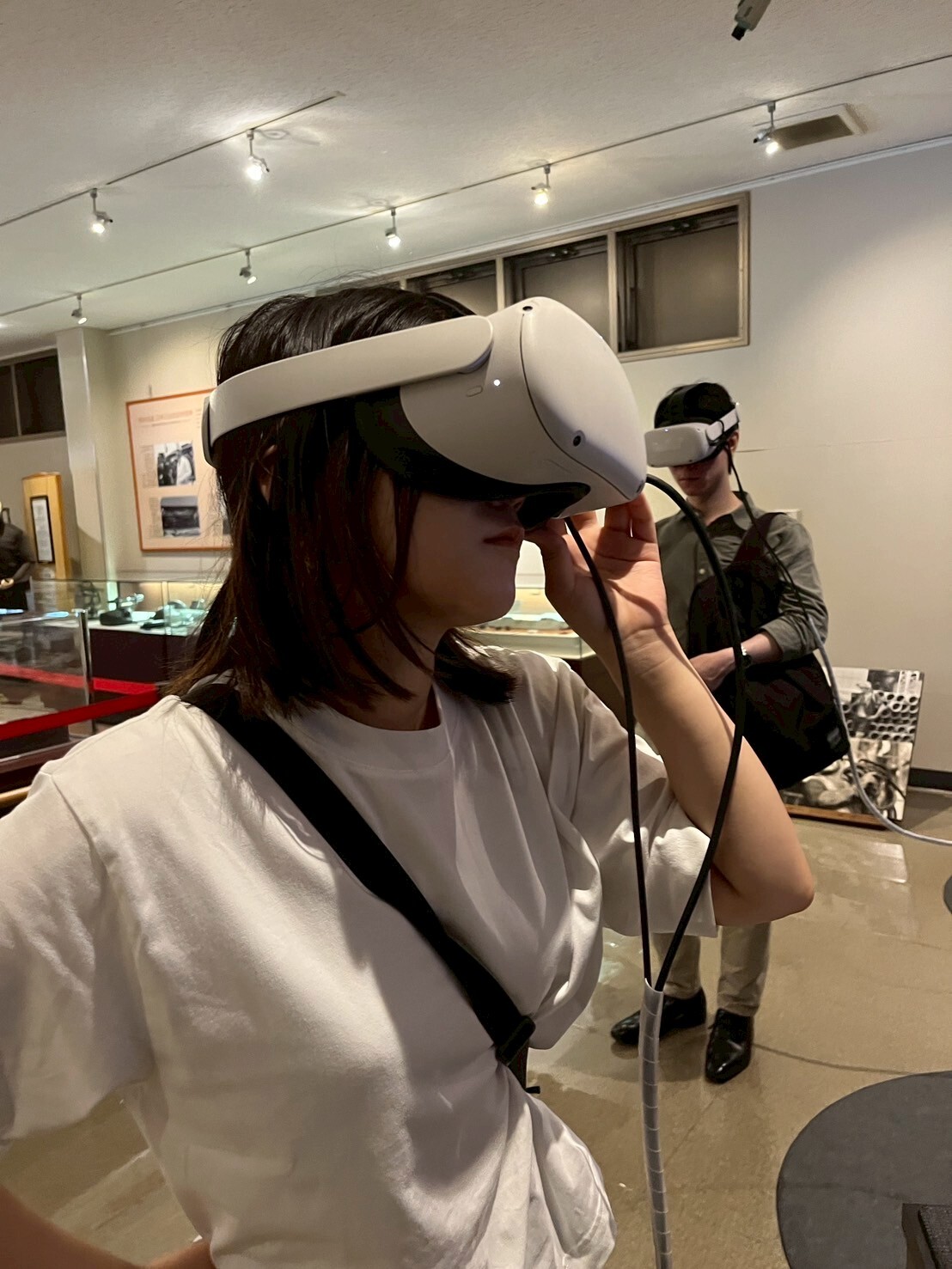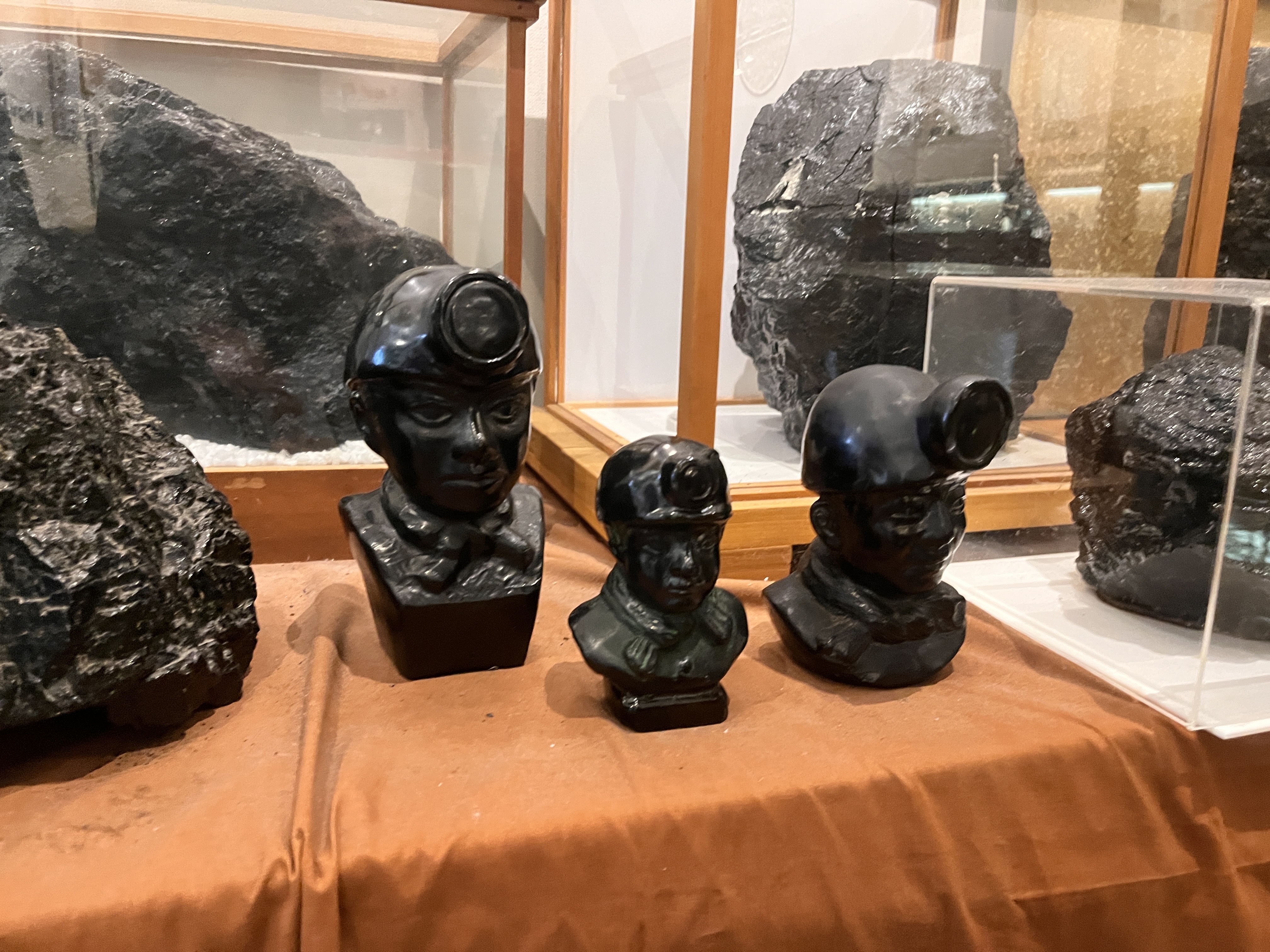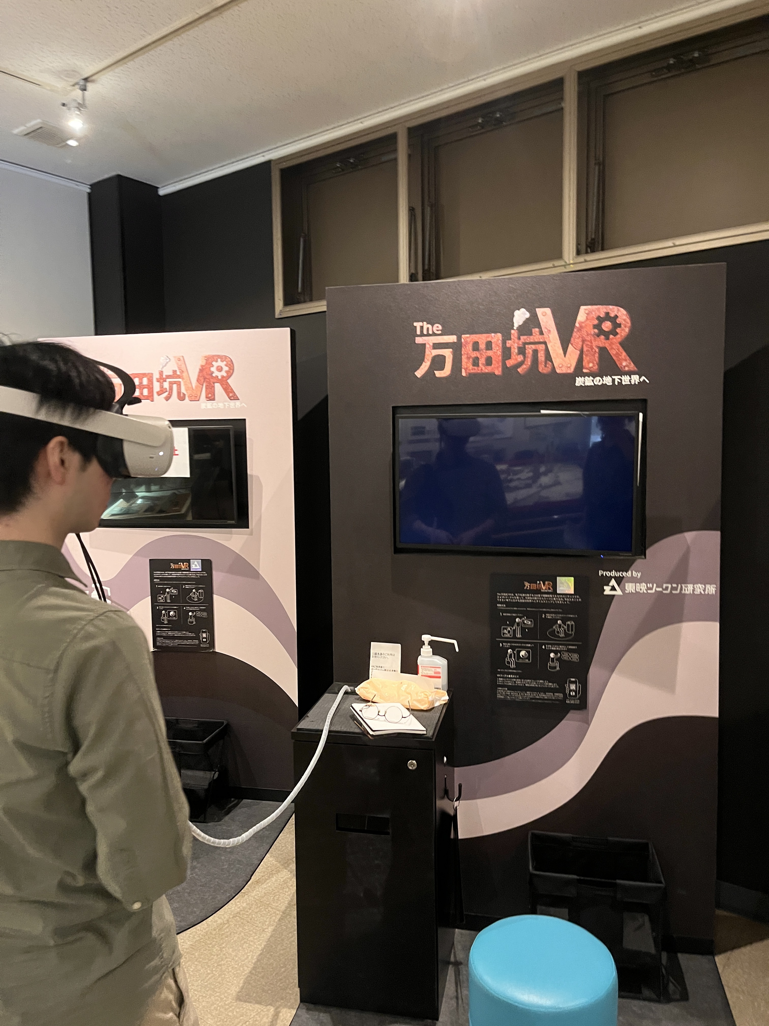 そして向かったのは、万田坑。万田坑ステーションの展示室で藤木さんに解説を伺ったり、展示物を見たり、万田坑の坑内を巡るVRを体験したりしました。事前に「大牟田・荒尾炭鉱のまちファンクラブ」藤木さんに送っていただいた三池炭鉱をテーマにしたDVD「三池 終わらない炭鉱(やま)の物語」(熊谷博子監督, 2006年)では、労働力を確保するため、当時の囚人を働かせていた、という説明がありましたが、万田坑では囚人を使っていなかったということでした。また、万田坑で働く人々は、社宅とある程度の給料を得ることができたため、徐々に希望して働く人が増えていったそうです。